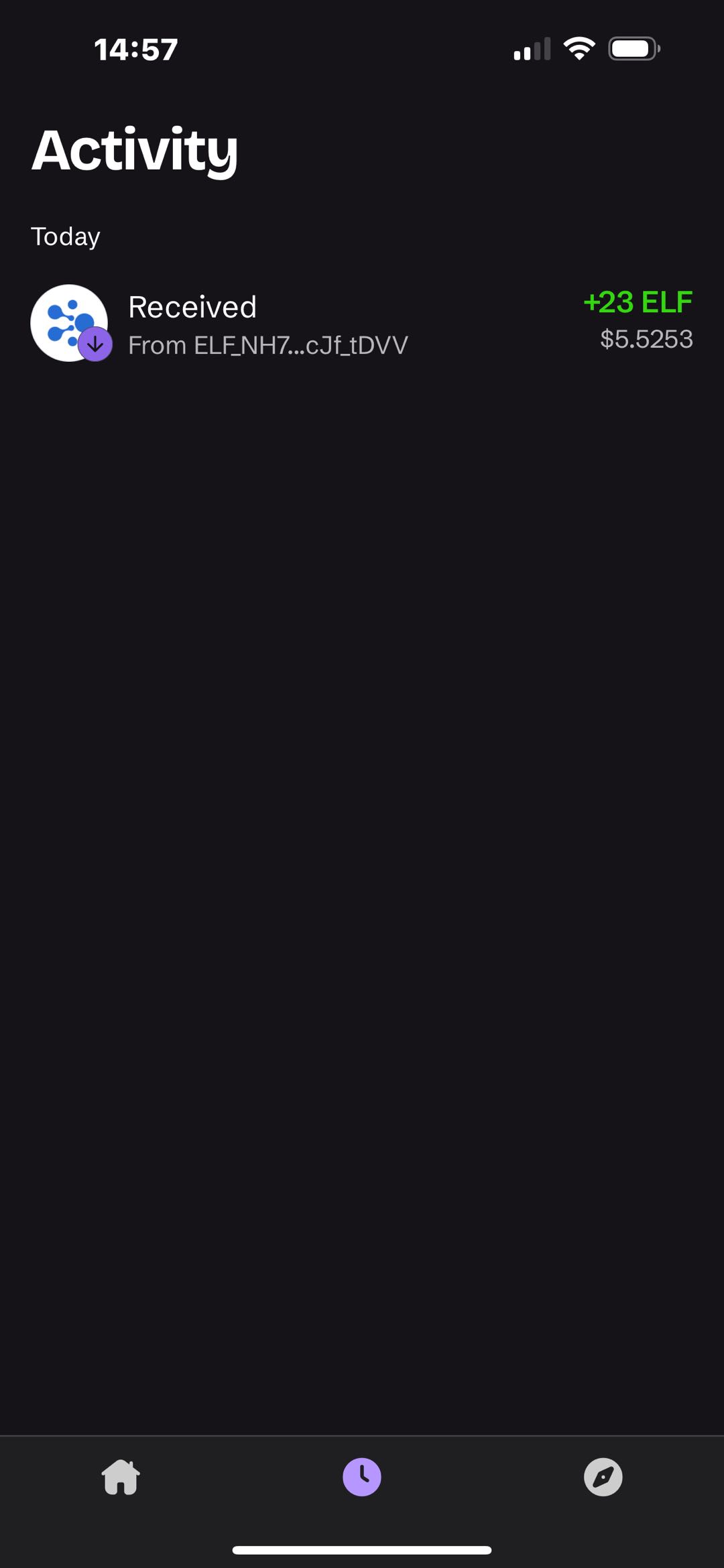 Click on any record to see its details, such as the date, status, transaction ID, and fees. For more in-depth information, click "View on Explorer" at the bottom, which will take you to the transaction details page on aelfscan. You can check additional data like block info and logs there.
